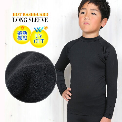 保温インナー キッズ ホットラッシュガード FELLOW 蓄熱 保温 速乾 裏起毛 紫外線予防 UPF50+ 長袖タイプ 80〜150 夏のプール体温低下防止 冬 サーフィン セミドライ ウェットスーツ用インナー として 水中や陸上でも