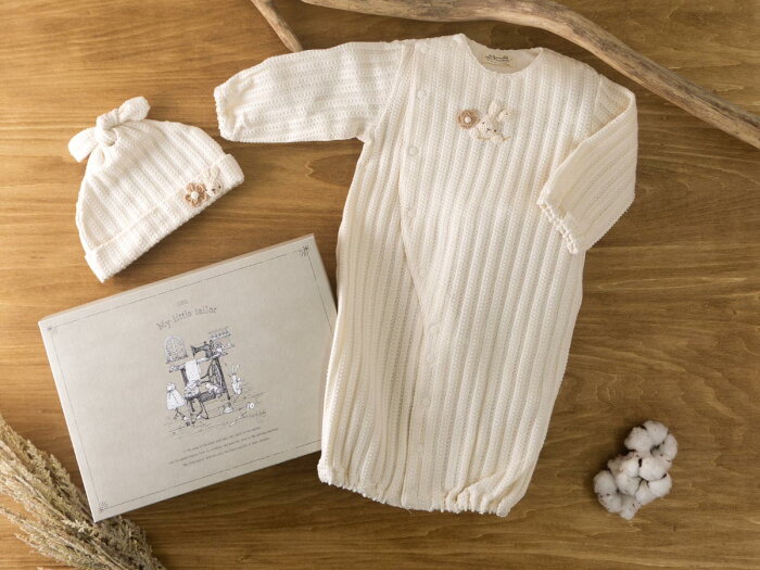 [オーガニックギフト]レーシーニットのお揃いセット▼▼兼用ドレスとフードの特別な3点ギフトセットです。