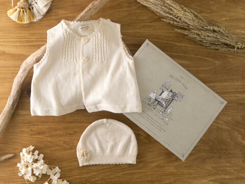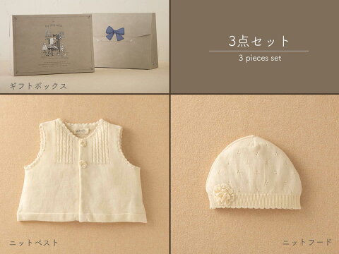 [オーガニックギフト]ニットのベストとフード▼▼ベストとフードの特別な3点ギフトセットです。