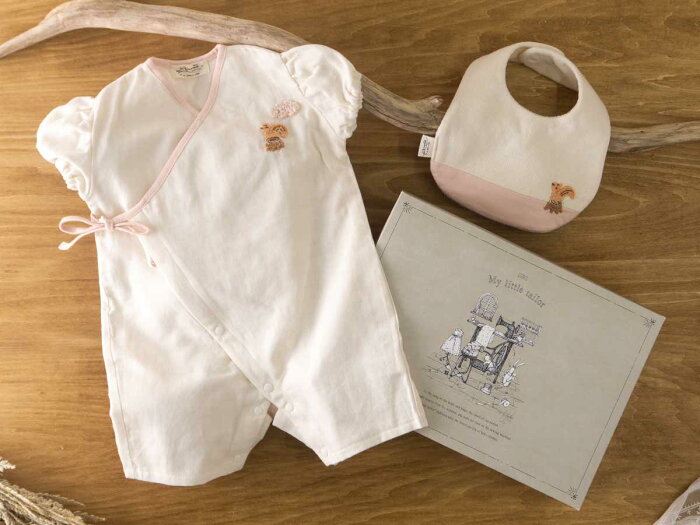 結びやすいすこし太めのひもや胸元ワンポイントもおしゃれ。