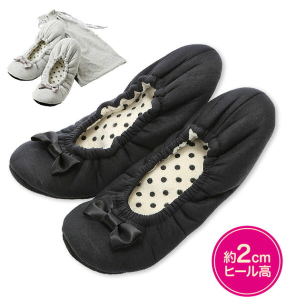 約2cmのヒール付きで美脚効果&パンツの時も裾を引きずりにくいから動きやすい!土踏まずにクッションが入っているので気持ちいい!お洗濯もできるからいつでも清潔!付属のポーチに入れて 持ち運べるので、おウチやオフィスでもオシャレに美脚♪