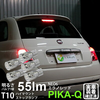 [画像車両:FIAT 500 型式:ABA-31209 平成24年11月登録車両] 商品仕様 商品名 FIAT 500[ABA-31209]対応ハイマウントストップランプ用LEDバルブ T10 HYPER NEO 6ウェッジシングル球 LEDカラー:ミラノレッド 1セット5個入り 仕様 DC12V車専用 [HV車・EV車・PHV車対応] 規格 T10シングル(W5W) サイズ 全長:26.5mm/最大直径:12mm/幅:9.5mm ※純正T10白熱球サイズ 全長:27mm/最大直径:10mm/幅:9.5mm カラー ミラノレッド 明るさ 全光束55ルーメン(lm)※ルーメン値は、バルブ1個の値を示しています。