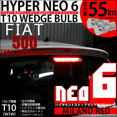 【補助制動灯】フィアット FIAT 500[ABA-31209]ハイマウントストップランプ対応LED T10 HYPER NEO 6 WEDGE[ハイパーネオシックスウェッジシングル球] LEDカラー:ミラノレッド(赤) 1セット5球入(2-D-5)