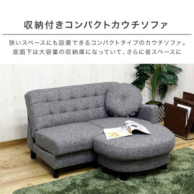商品サイズ [ 2Pソファ ] 全体:幅110×奥行72-90×高さ68cm 座面高38cm / 脚高10cm 収納:幅102×奥行48×高さ7cm 重量:約34kg 耐荷重:約200kg [ オットマン ] 全体:幅72×奥行43×高さ38cm 脚高10cm 耐荷重:約100kg 材質 張地:ファブリック (ポリエステル100%) 座面:Sバネ / ウレタン ギア:ローリングギア 商品詳細 完成品 (脚のみ取り付け) 脚を取り外して使用可能 ローリングギア クッション付き オットマン付き ※リクライニング機能なし (ソファ、ベッド2段階) ※アイボリー色とグリーン色の脚はナチュラル色 商品説明 ワンルームなどの小さなスペースでも設置しやすいコンパクトサイズのカウチソファ。