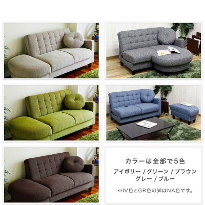 ソファ ソファー 2Pソファ カウチソファ 2人掛け 2人用 ローソファ ソファベッド 110cm幅 座面高38cm 耐荷重約200kg スツール付き 収納付き おしゃれ かわいい 北欧 カジュアル ファブリック サリー カウチソファ (IV/GR/BR/BL/GY)