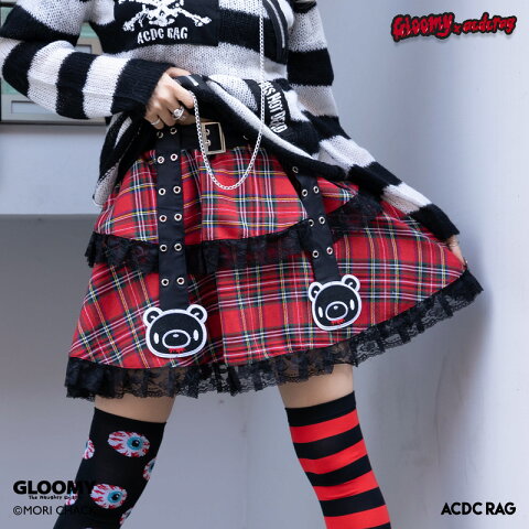 ダークグル〜ミ〜 ベルトスカート ボトムス 原宿 原宿系 病みかわいい 病みかわ ファッション パンク ロック V系 グロかわ レディース 個性的 派手カワ グル〜ミ〜 コラボ ロゴ チェック ワッペン ブラック レッド ACDCRAG