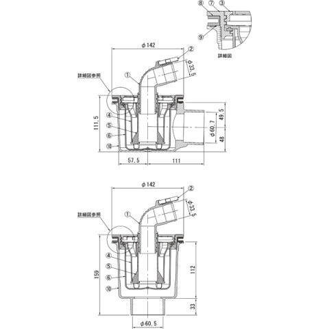 テクノテックの一覧はこちら 【製品寸法(mm)】直径142×高さ111【製品重量】0.47kg【接続管】VU50・VP50防水パン用の排水トラップです。