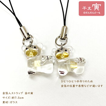 寅 とら 金箔 ストラップ 干支 かわいい お守り ガラス 縁起 開運 健康 学問 手づくり 干支守り 根付 ガラス細工 2022 硝子 プレゼント ギフト 海外土産 タイガー がおー ガオー お年賀